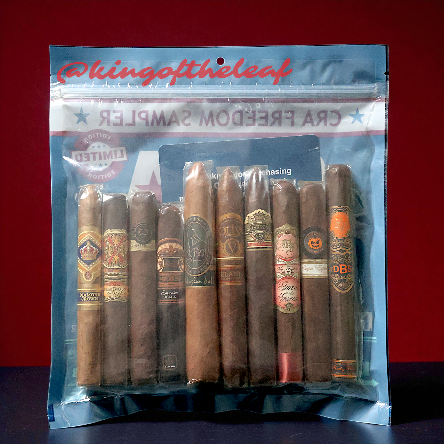 Experience one of the most exclusive and prestigious sampler packs of the 2024 — the CRA Freedom Sampler 2024. This ultra-limited collection brings together ten of the world’s most coveted premium cigars, each crafted by industry legends and board members of the Cigar Rights of America (CRA). These cigars represent the pinnacle of blending mastery and artistry, rarely found together in a single collection.