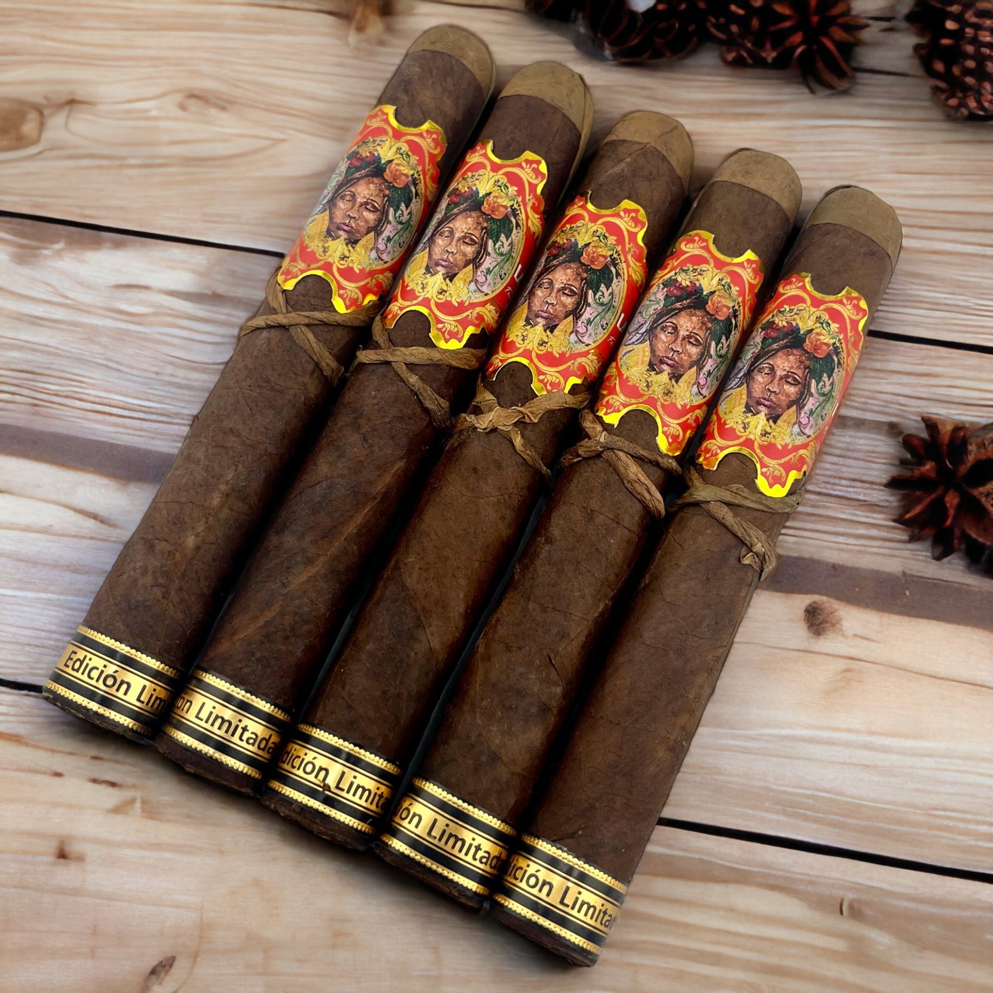 Diosa Latina, a tribute to women, stands out distinctly among the company's lineup. Its composition includes a harmonious blend of Dominican, Honduran, Nicaraguan, Mexican, and Ecuadorian tobaccos, delivering a smoke with nuanced notes of fruitiness, woodiness, coffee, and cocoa. Adorned with Habano and Connecticut wrappers, the 6x52 Toro vitola's final touch features a tobacco veil and knot, emblematic of the captivating and refined experience crafted in homage to women.