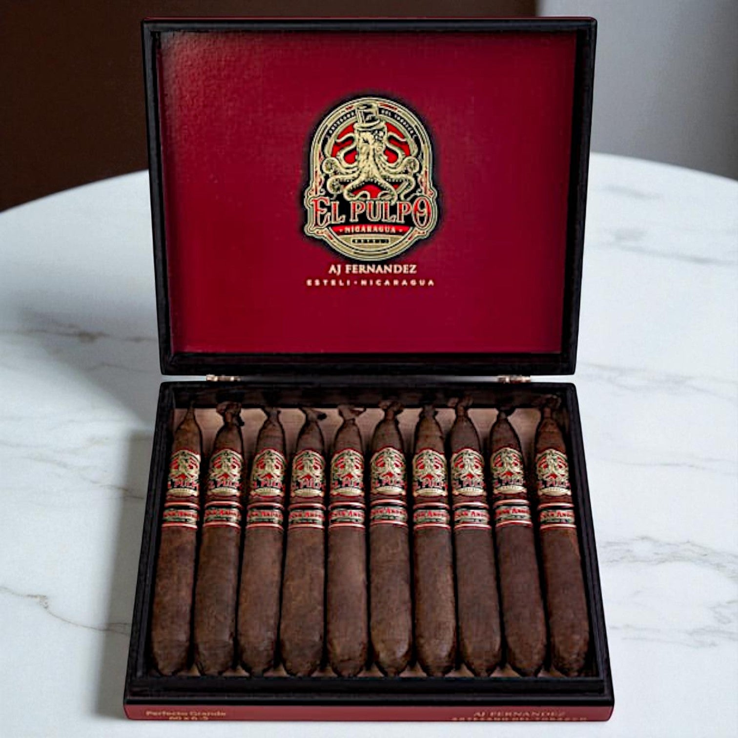 El Pulpo “The Squid” is the latest deep-sea creation from Artesano del Tobacco’s bold and aquatic-themed line. Handcrafted by A.J. Fernandez in Nicaragua, this full-bodied masterpiece features a near-black Mexican San Andrés wrapper over a robust Nicaraguan blend, delivering a rich and powerful smoking experience.