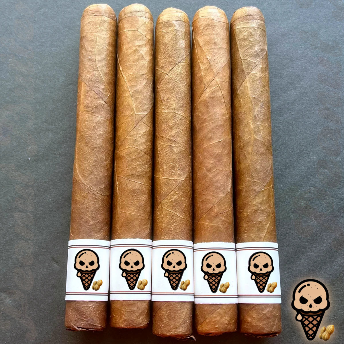 Ezra Zion's MELTED PEANUT BUTTER ICE CREAM is an ultra-limited 6x46 skinny Toro, with a flawless 12-year-aged Corojo 99 Claro wrapper with a secret blend of binder and filler tobaccos aged between 6–12 years. The result is a full-bodied, medium/full-strength smoke that’s as decadent as dessert itself.
