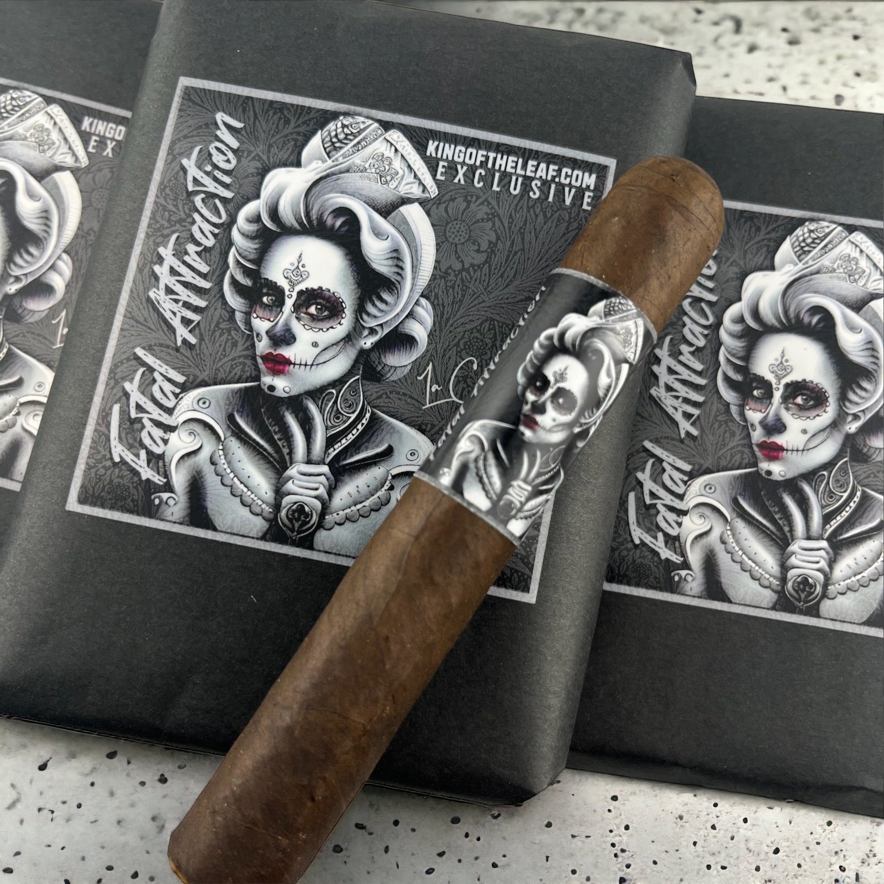 The Limited Edition Fatal Attraction is the first KOTL Exclusive cigar blended for our King of the Leaf Cigar Club members. It was introduced in the month of October 2023 as a treat cigar, an extra 6th cigar among the pack of 5 for club members. Our way of saying thank you for the month of Halloween.