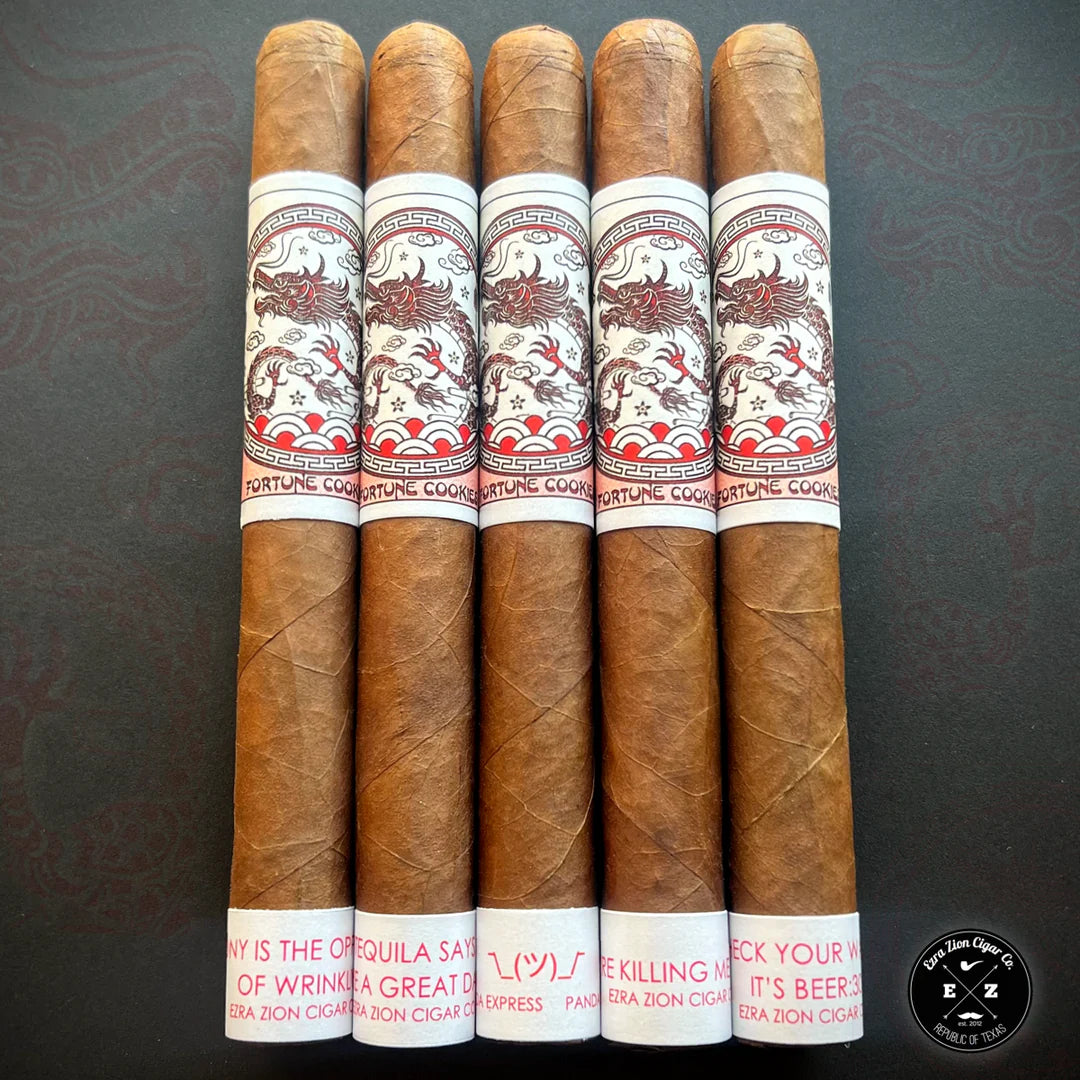 Introducing the latest limited release by Ezra Zion, FORTUNE COOKIE 2024 Ltd. —a full-bodied, medium/full-strength cigar that’s as unique as it is delectable! This 6.25x46 Corona Gorda features a stunning 10-year-aged Corojo 99 Rosado wrapper, with secret fillers aged between 7-12 years. First released in 2017, the FORTUNE COOKIE blend has become a fan favorite with its sweet, creamy, and bold flavors that evoke the taste of a classic fortune cookie.