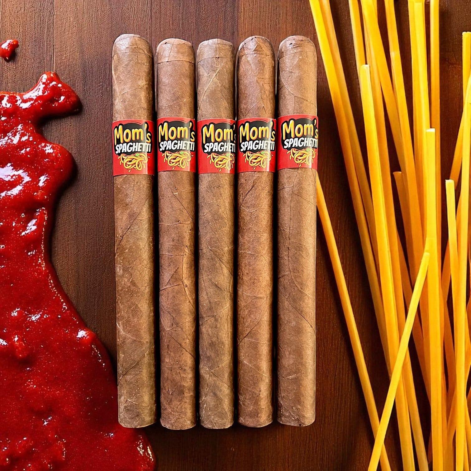 “His palms are sweaty, knees weak, arms are heavy…” Yeah, you know the line. And now you’ve got the cigar to match it. Introducing Mom’s Spaghetti—the latest small-batch banger from King of the Leaf.