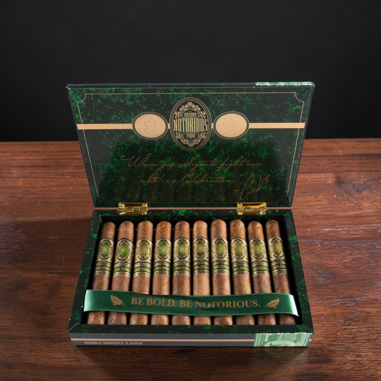 A bold statement in craftsmanship, Notorious is a cigar that commands attention—just like the name behind it. Crafted for those who seek both power and refinement, this medium-bodied blend delivers a complex, luxurious smoking experience from first light to final draw.