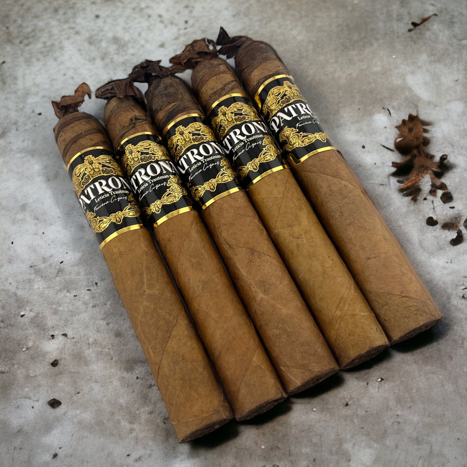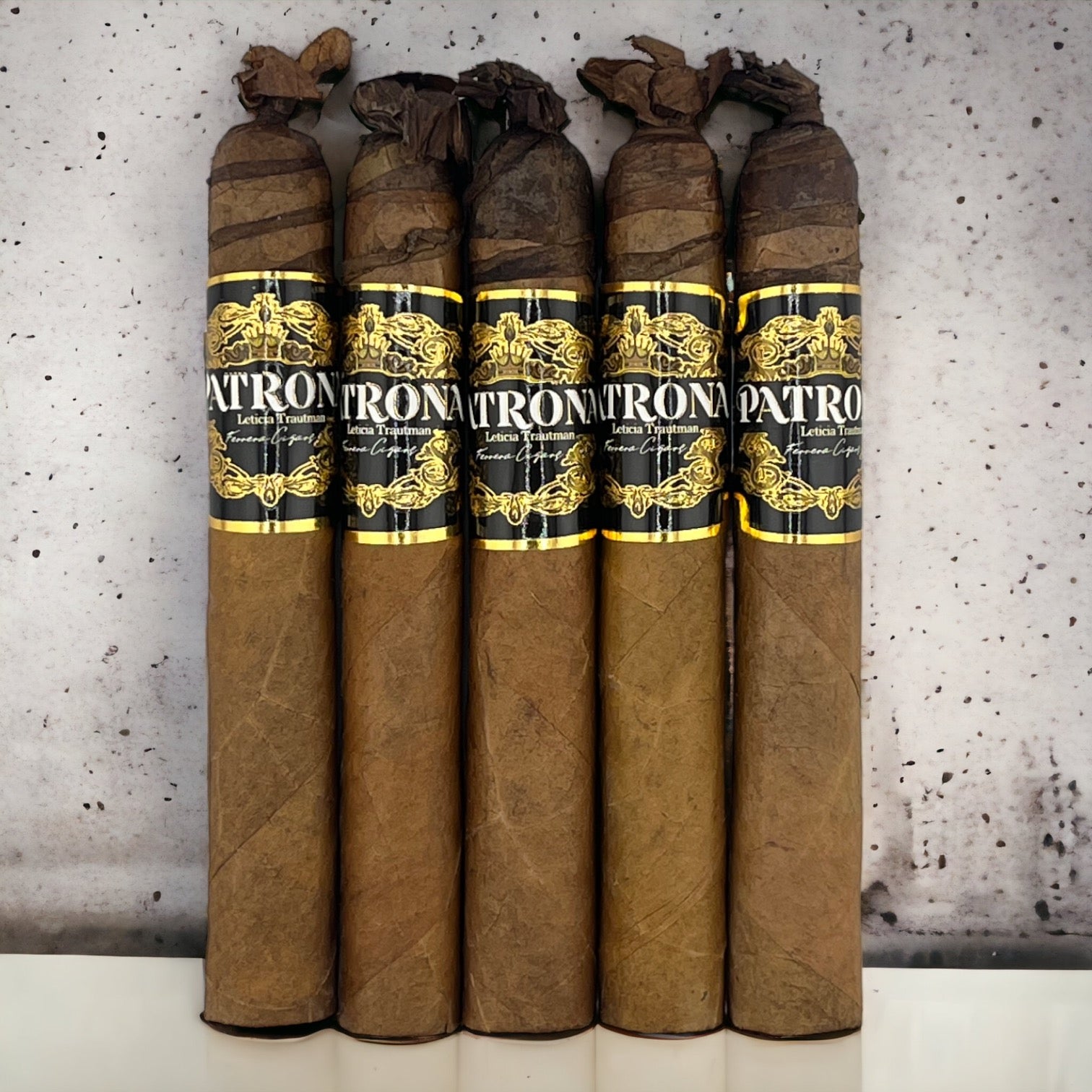 Patrona cigars is inspired by Leticia Trautman the PATRONA of Ferrera Cigars. This cigar contains a blend of tobacco cultivated in Honduras, Nicaragua, Ecuador and Dominican Lands. With details in its upper part symbolizing a crown as the worthy patroness of premium tobacco and a serpentine that dies in the ring that decorates it as a synonym of the growth of its creator’s empire.