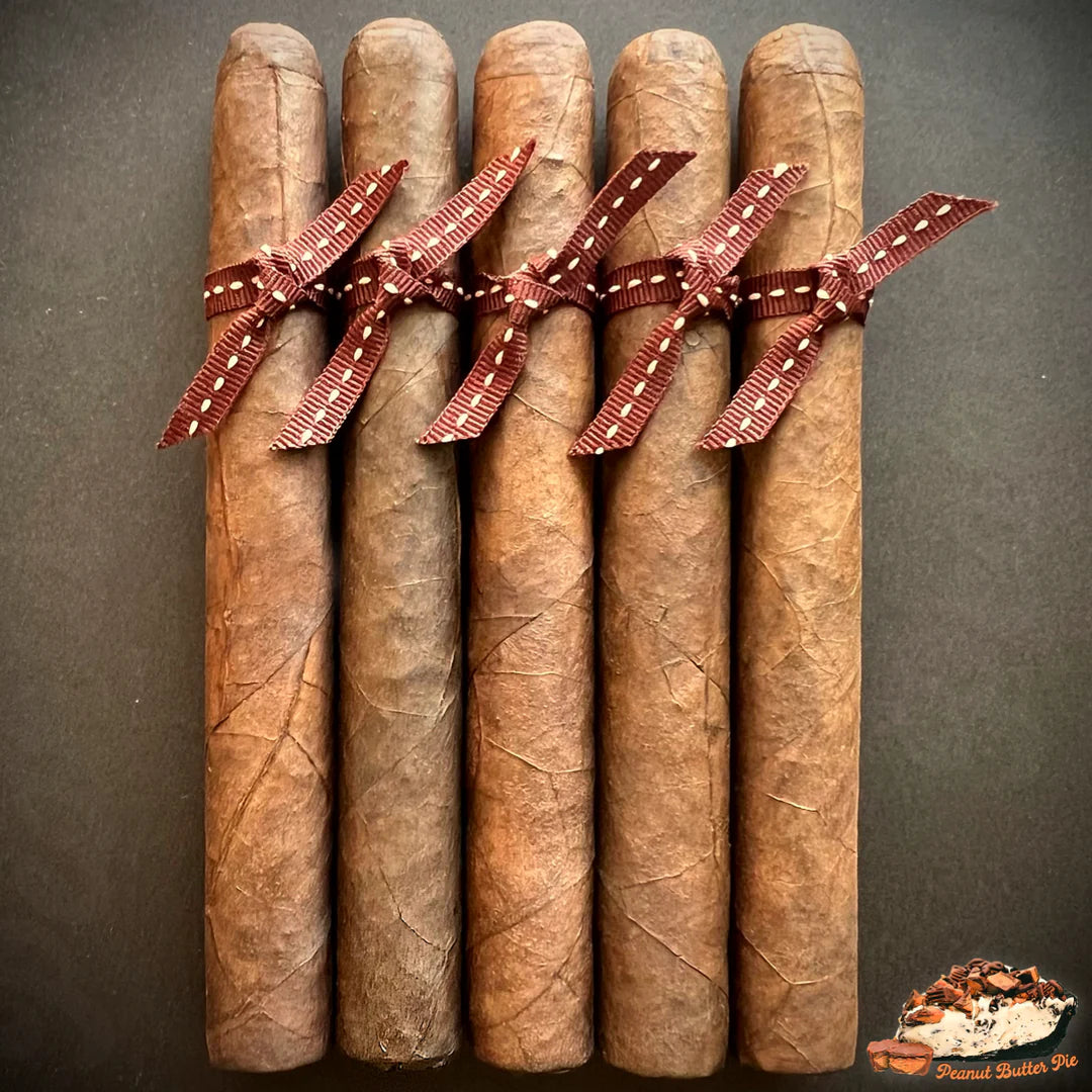 Ezra Zion just can't resist creating dessert-inspired cigar, Peanut Butter Pie—a luxurious blend that surpasses anything they've made in their “Pie” line. This full-bodied, medium/full strength 6 1/4 x 50 Toro extra features a rare 10-year-aged San Andres maduro wrapper, complemented by secret fillers aged between 7-12 years. The cigar bursts with rich flavors, including Cocoa, Toasted Nuts, Peanut Brittle, Espresso, White Pepper, balanced perfectly between sweet and savory. With only 570 cigars produced, this limited edition will sell out fast. Don’t wait—secure yours before they’re gone!